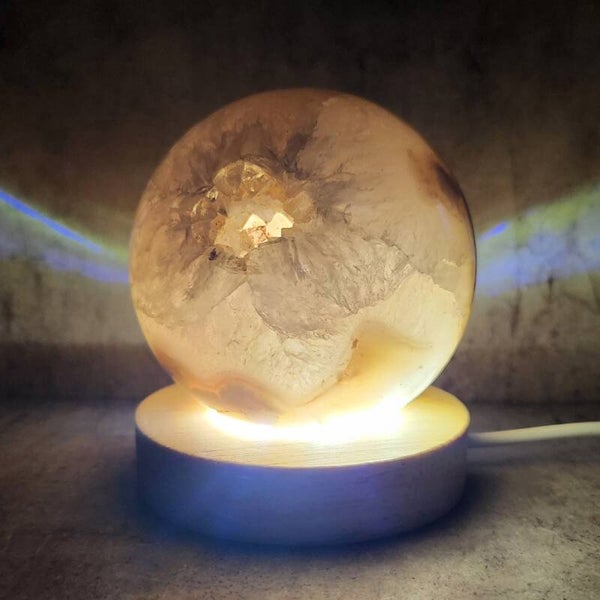 Agaat Geode, ook wel de steen der verstilling en diepe verbinding, combineert de stabiliserende kracht van agaat met de zuiverende energie van kwartskristallen. Deze natuurlijke combinatie werkt beschermend, inzichtgevend en kalmerend.