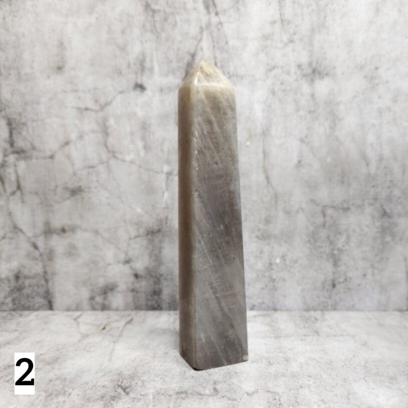 Structuur en kleur: Gelaagde veldspaat met een parelmoerachtige glans. De kleur varieert van warm taupe tot grijzig bruin, vaak met een subtiele maanachtige schittering bij beweging.