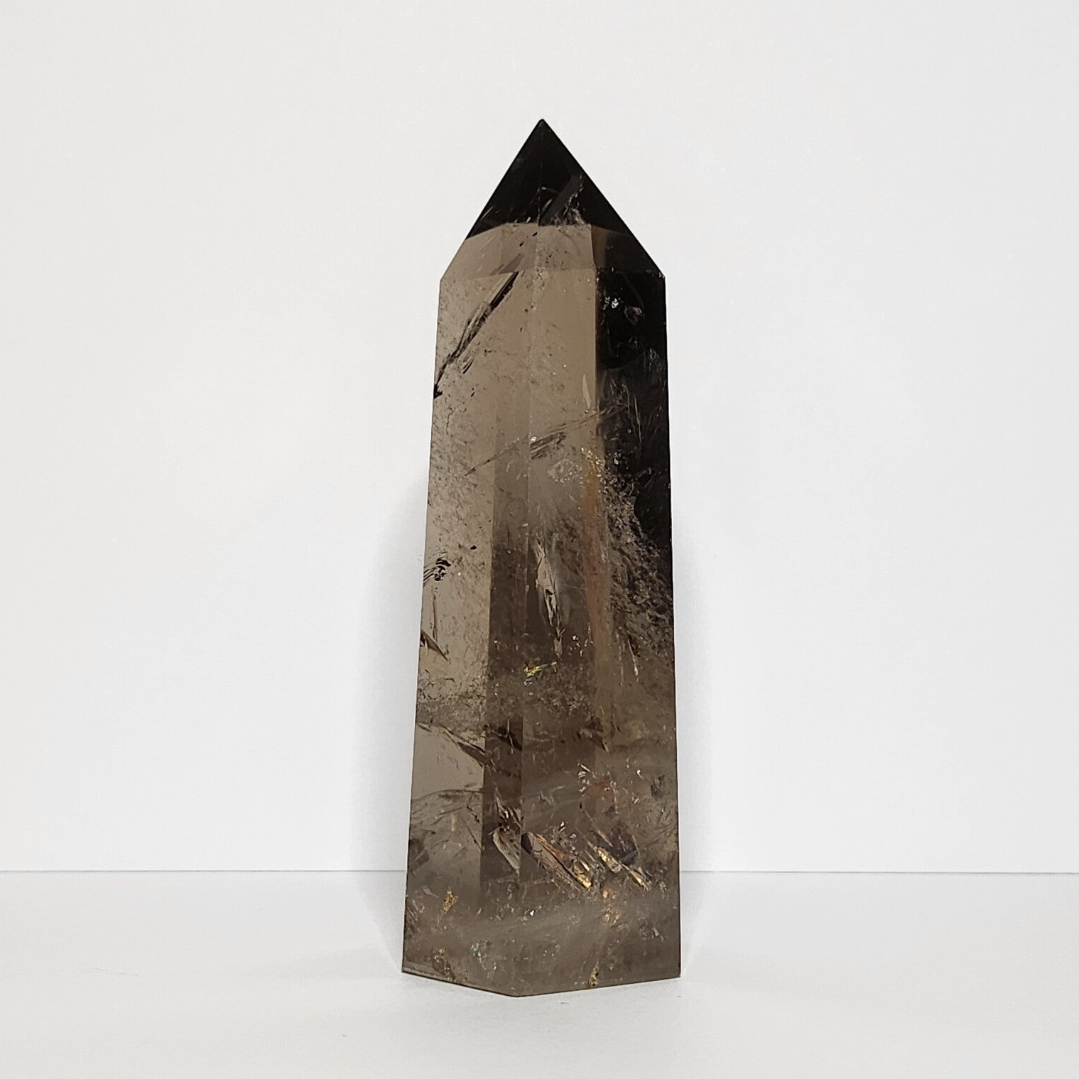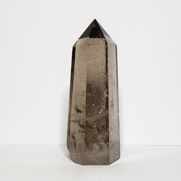 Structuur en kleur: Helder tot transparant kristal met rookachtige tinten in bruin, grijs of zwart. De intensiteit varieert van zacht mistig tot diep ondoorzichtig, afhankelijk van natuurlijke stralingsblootstelling.