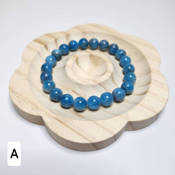 Uiterlijk: Blauwe Apatiet is een schitterende edelsteen die varieert in tinten van diepblauw tot turquoise, bevat vaak subtiele insluitsels of aders die een uniek patroon creëren, wat elke steen een eigen karakter geeft. Het levendige blauw van de steen straalt een verfrissende en levendige energie uit.