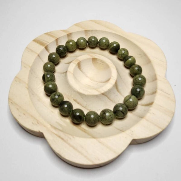 Tibetaanse jade: is een kostbare steen die varieert van lichtgroen tot diep donkergroen, soms met aders van andere kleuren zoals wit of bruin. Deze steen heeft een gladde, glanzende afwerking en een stevige textuur. De rijke kleuren en de fijne nerf van Tibetaanse jade maken het een geliefde steen.