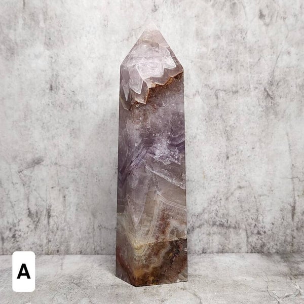 Amethist Agaat is een samensmelting van werelden: de spirituele helderheid van amethist vervlochten met de verzachtende structuur van agaat. Deze steen is als een ademhaling tussen hemel en aarde, tussen inzicht en aanwezigheid. Zijn lagen tonen subtiele overgangen van paars naar grijs, beige of wit, soms met een fonkelende kern van druzykristallen. Amethist Agaat ondersteunt balans tussen het denken en het voelen, tussen spirituele aspiratie en dagelijkse realiteit. Hij nodigt je uit om bewust te zijn — gegrond, helder en verbonden.